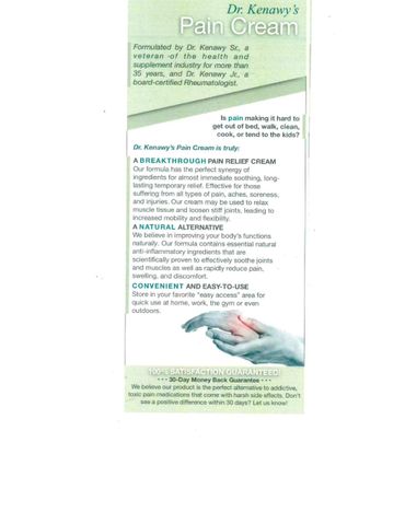 My husband has tried everything, from Rx, over the counter topicals with lidocaine, and various CBD topicals. He loves Dr. Kenawy's Pain Cream. He was a skeptic but by day 2 he couldn't deny it was doing much to relieve his pain than anything else he had used.